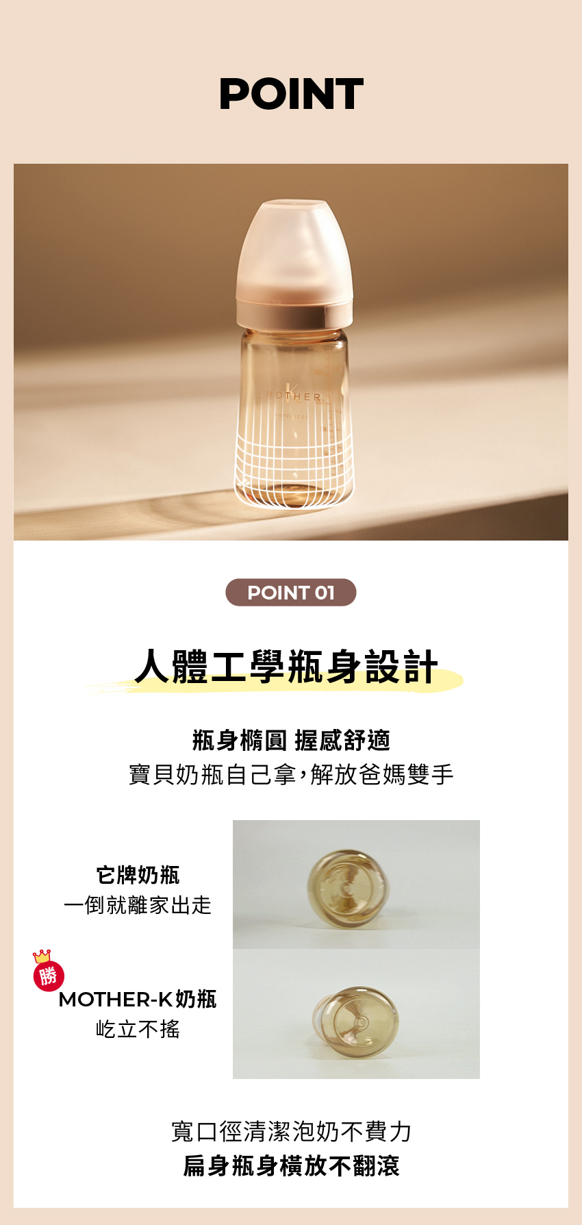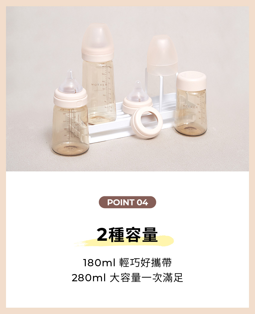 全新上市!MOTHER-K精粹極簡PPSU奶瓶,有180ml/280ml可選擇。舒服的色系,極佳的質感,給寶寶最好的呵護。