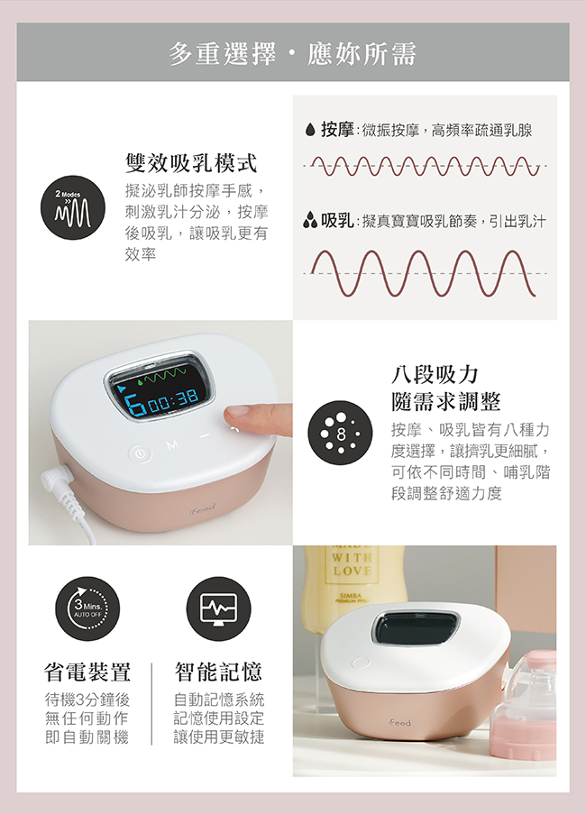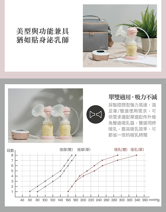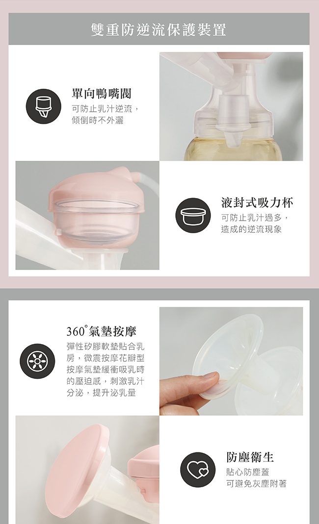 5.雙模式吸乳頻率─模仿寶寶吸吮母乳時運動實境,依喜好可調整適合的吸、放、停吸乳循環週期。