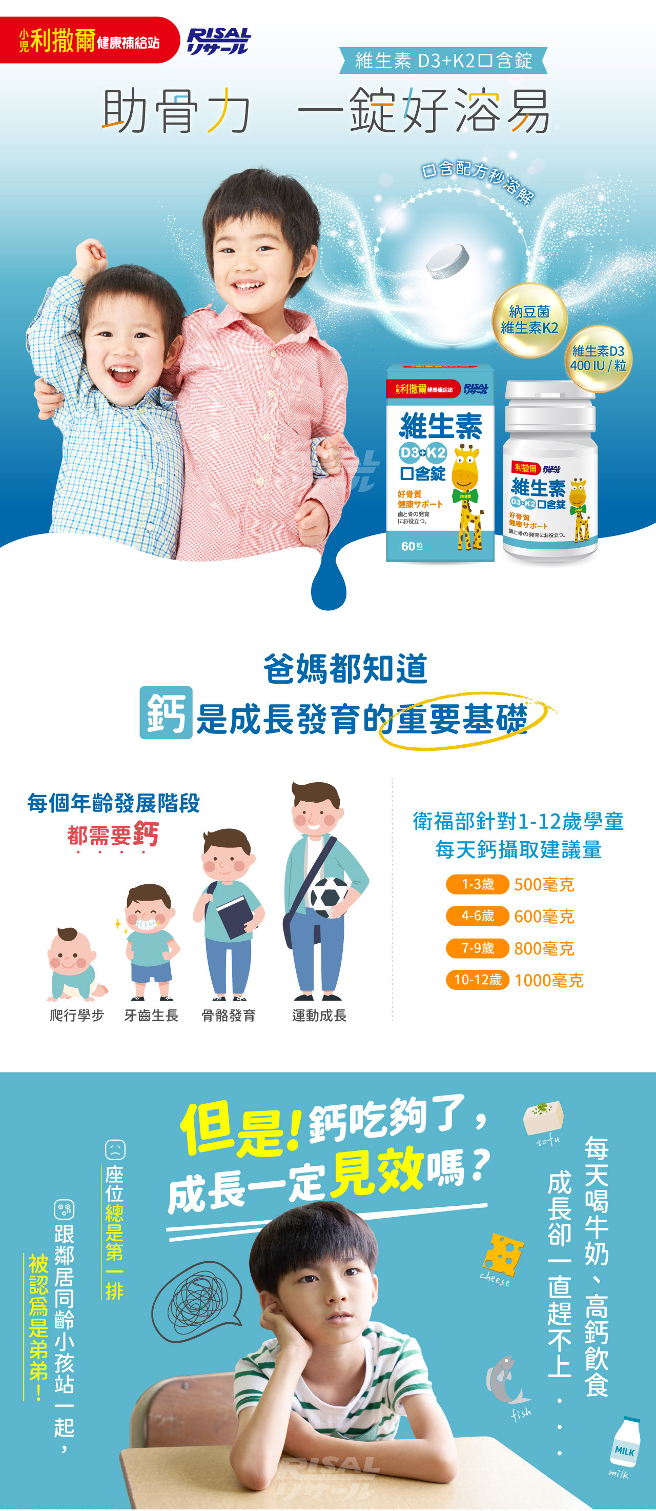 小兒利撒爾 維生素D3+K2口含錠-60粒