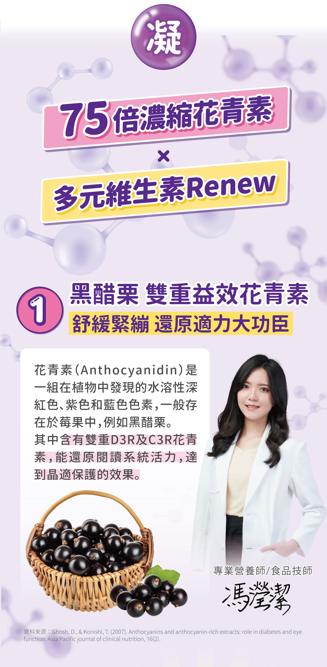 主成分:水、D-木糖醇、綜合蔬果濃縮汁、Fibryxa 玉米可溶性膳食纖維、蘋果濃縮汁、刺槐豆膠、香料、玉米糖膠、檸檬酸、葉黃素、抗壞血酸鈉、黑醋栗抽出物、洋菜粉、綜合維生素B群、維生素C、金盞花萃取物、檸檬酸鈉、維生素A醋酸鹽、維生素E