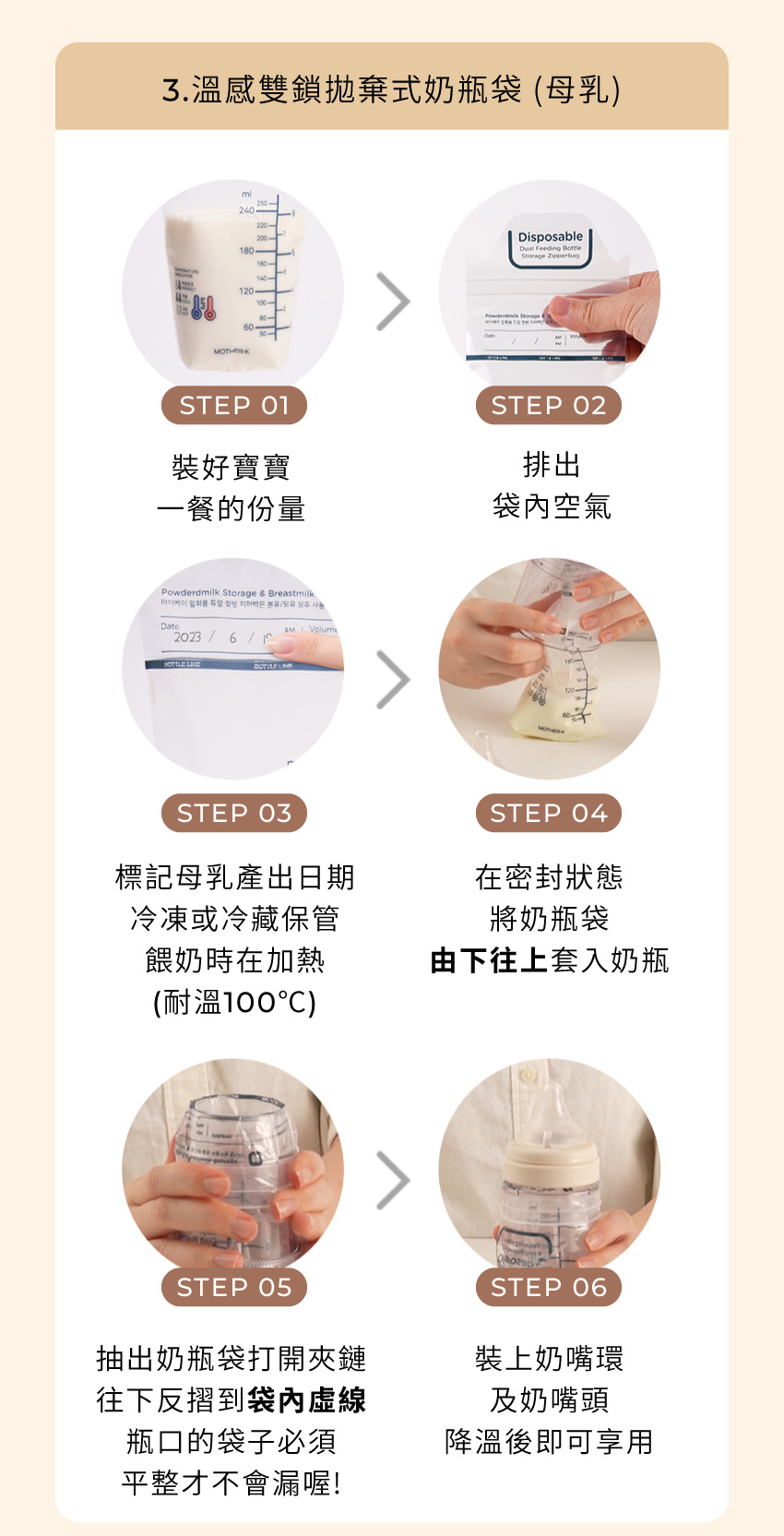 溫感雙鎖拋棄式奶瓶袋 50入(雙夾鏈)