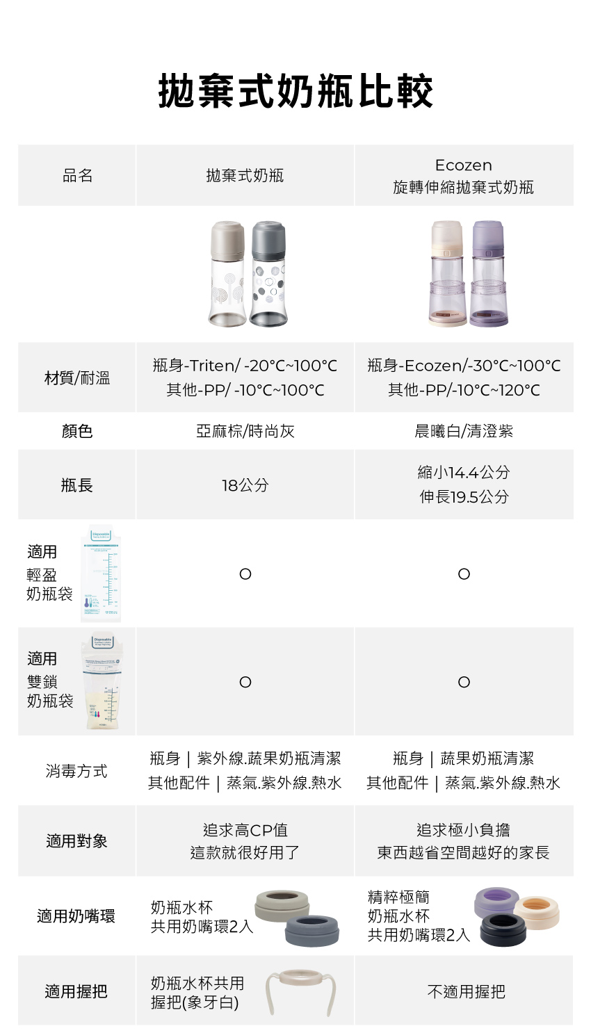 Ecozen旋轉伸縮拋棄式奶瓶-晨曦白