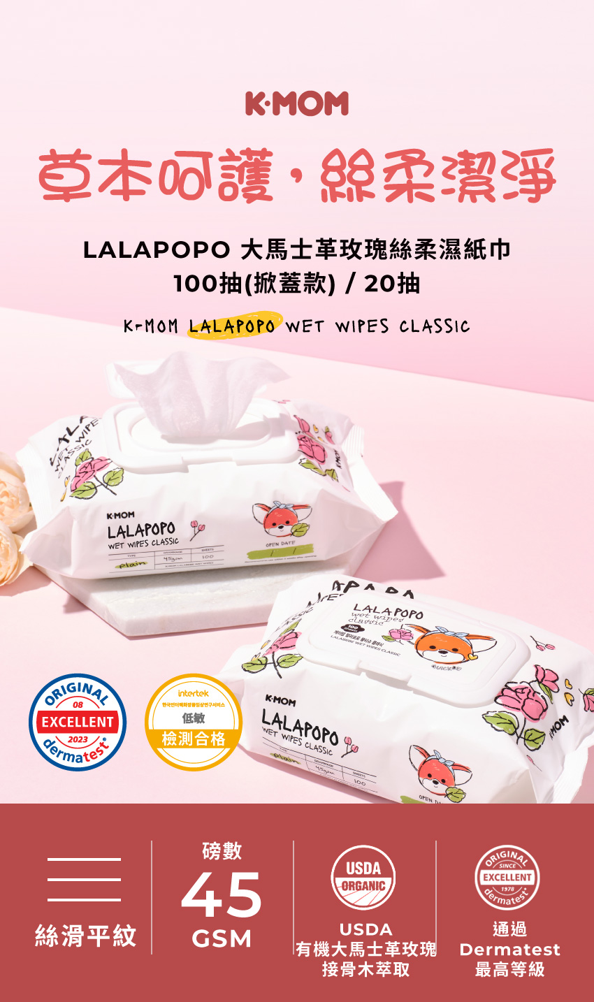 MOTHER-K LALAPOPO 大馬士革玫瑰絲柔濕紙巾20抽/4包