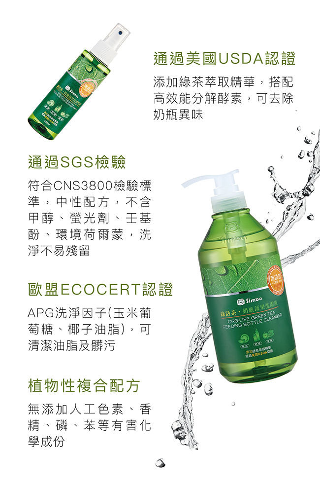1.添加綠茶萃取精華,通過美國USDA認證,搭配高效能分解酵素,可去除奶瓶異味。