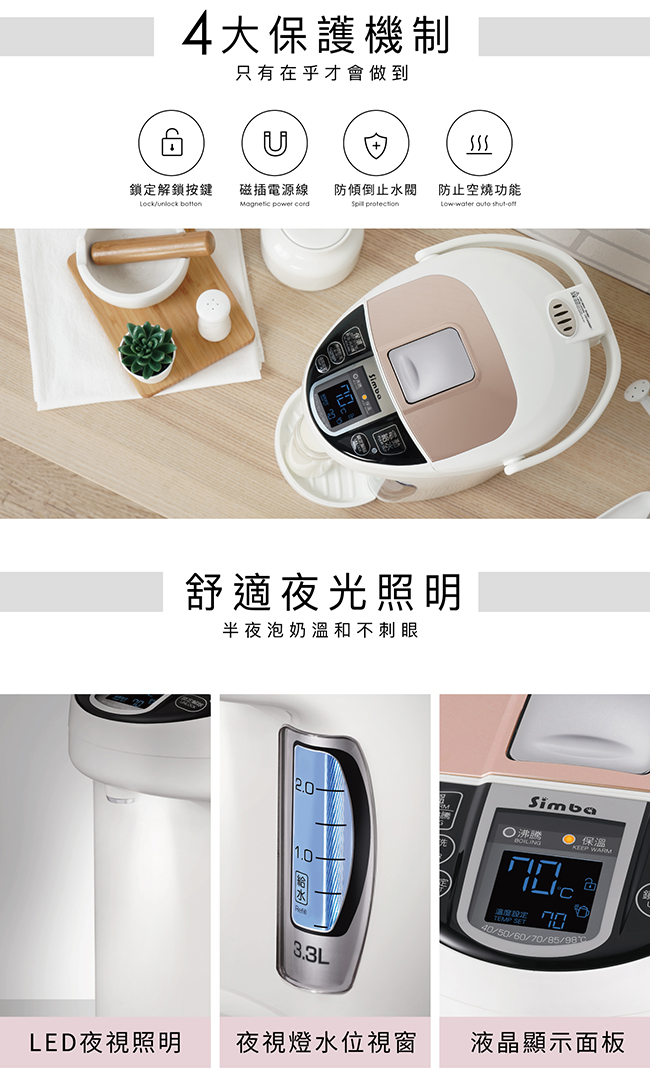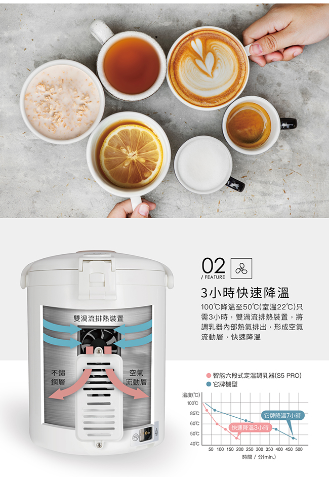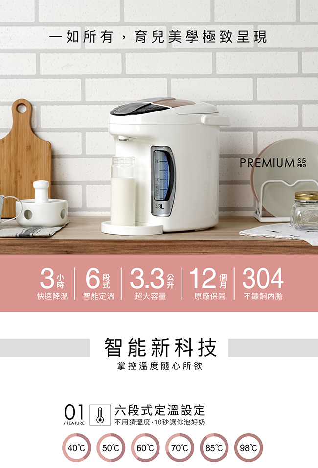1. 六段式定溫設定40/50/60/70/85/98℃