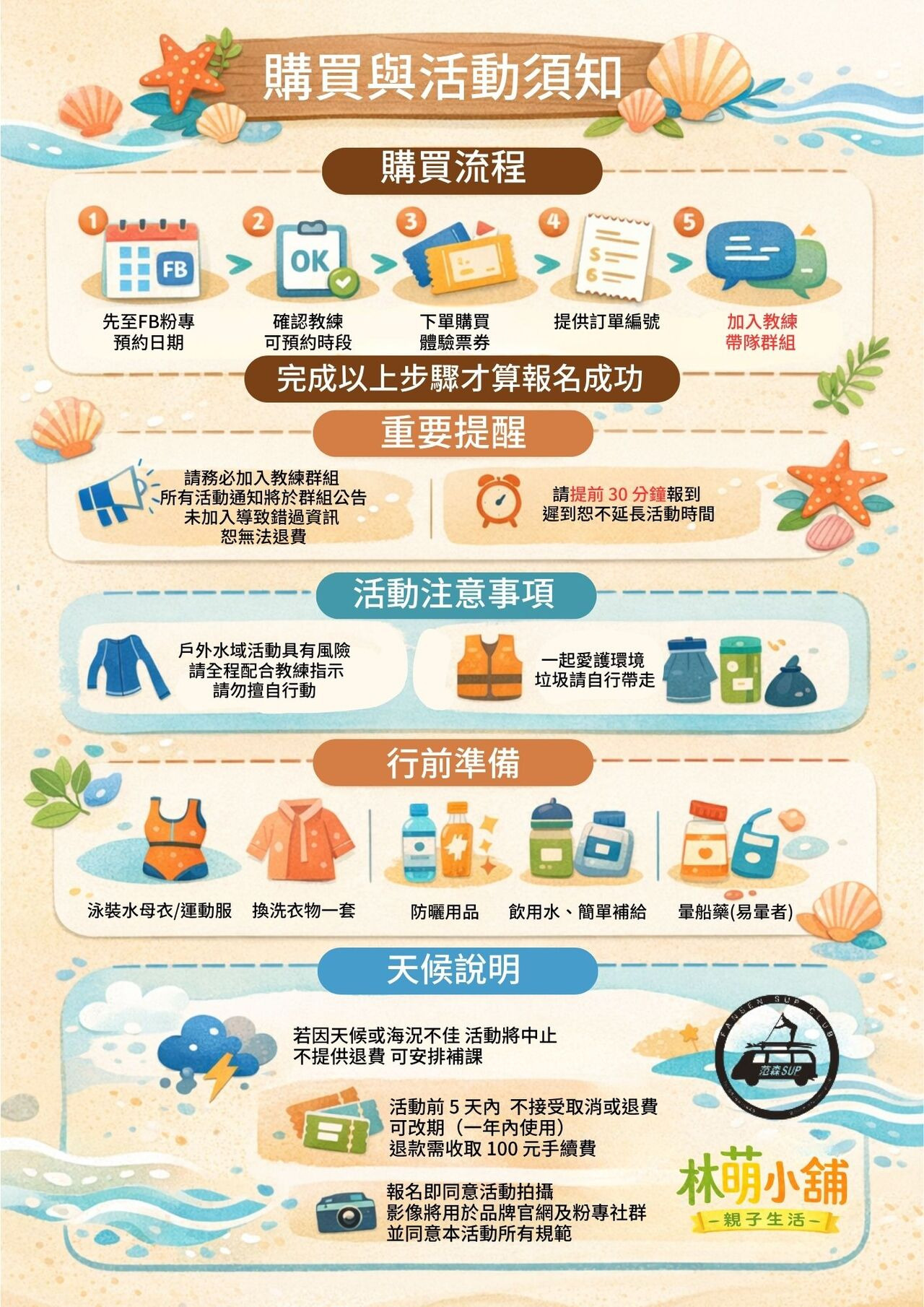 所有活動相關通知(如海況、時間或地點調整)