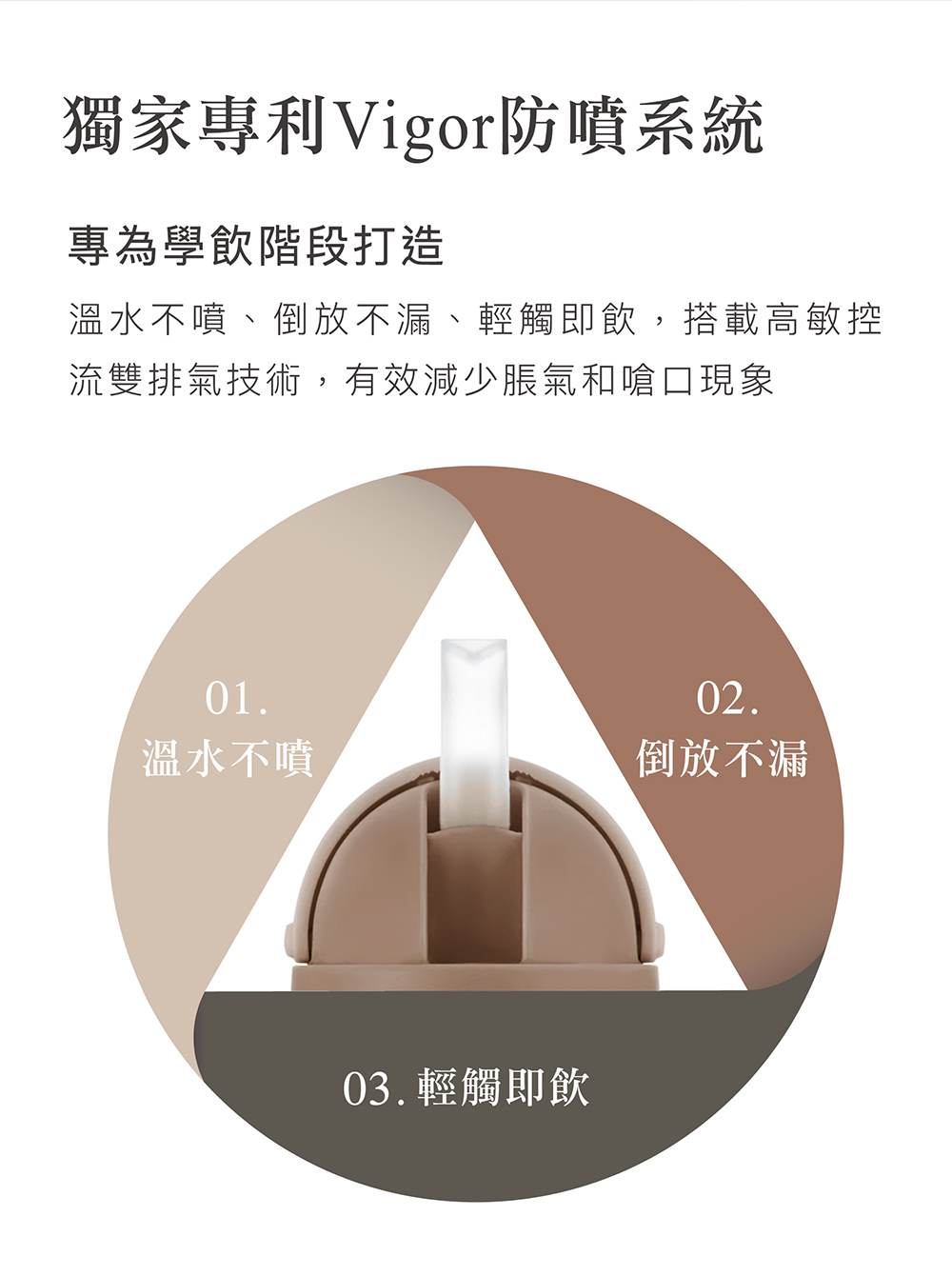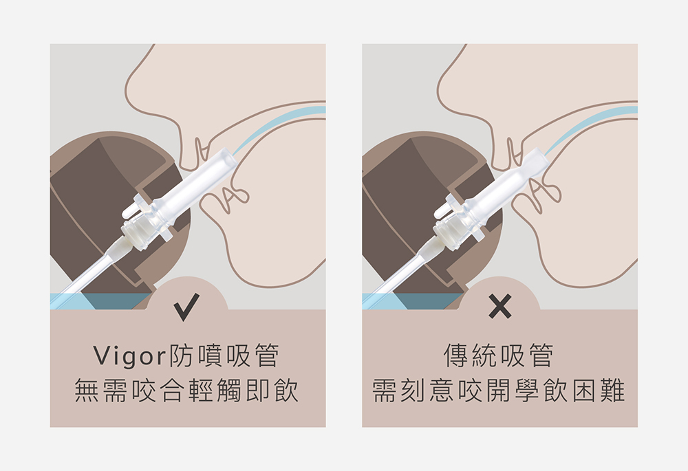 2. 新革命!獨家專利Vigor防噴系統,溫水不噴、倒置不漏。