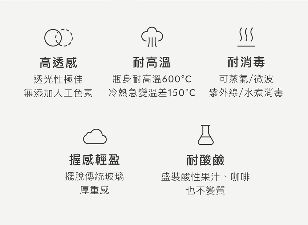 6. 嚴選頂級α-33耐熱玻璃,不含雙酚A&S、塑化劑,耐高溫600˚C。