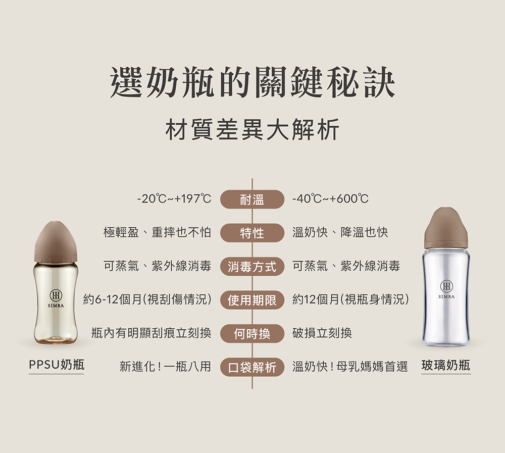 材質:•奶瓶蓋、中蓋:聚丙烯 (-20℃~+100℃) •奶瓶:硼矽酸玻璃 (-40℃~+600℃) •防脹氣奶嘴:矽膠 (-40℃~+150℃)