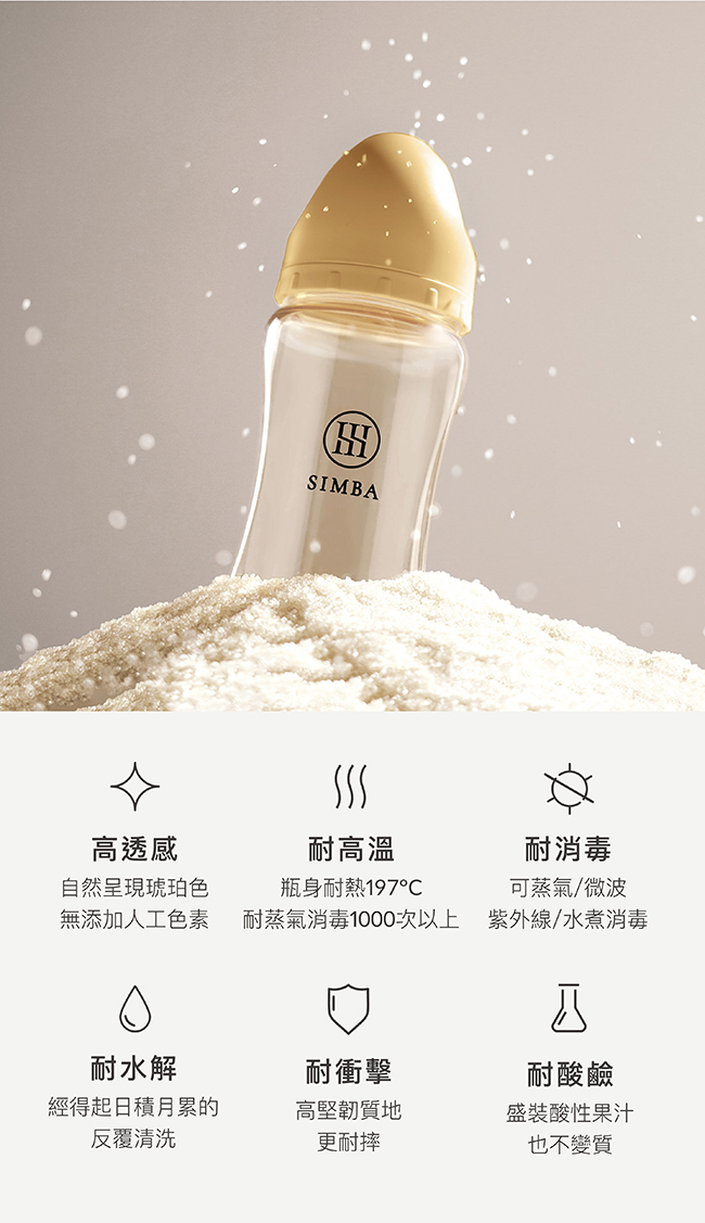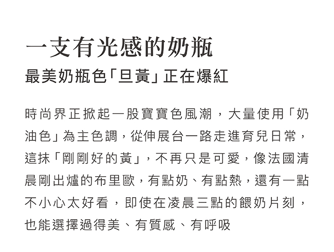 •瓶身配件會因消毒方式、使用習慣、使用頻率等,變深或變黃,屬正常現象。